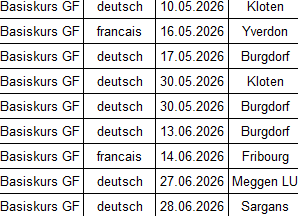 Die Daten der Praxiskurse werden zu einem späteren Zeitpunkt veröffentlicht. Sie finden meistens im August und Anfang September statt.